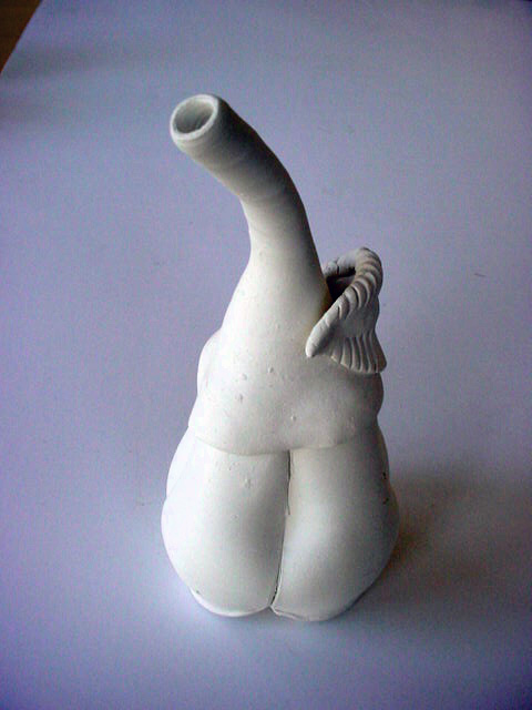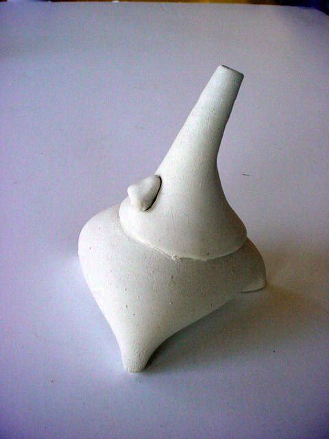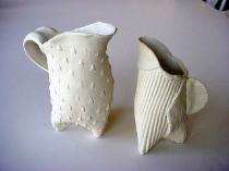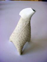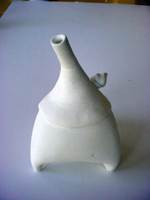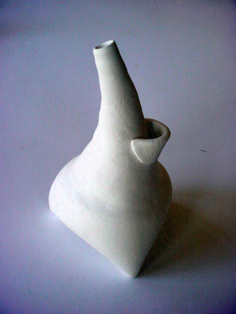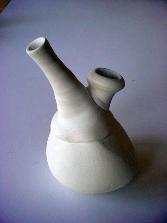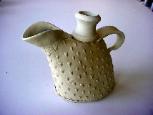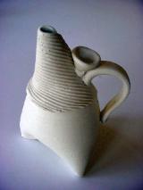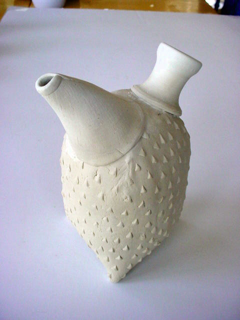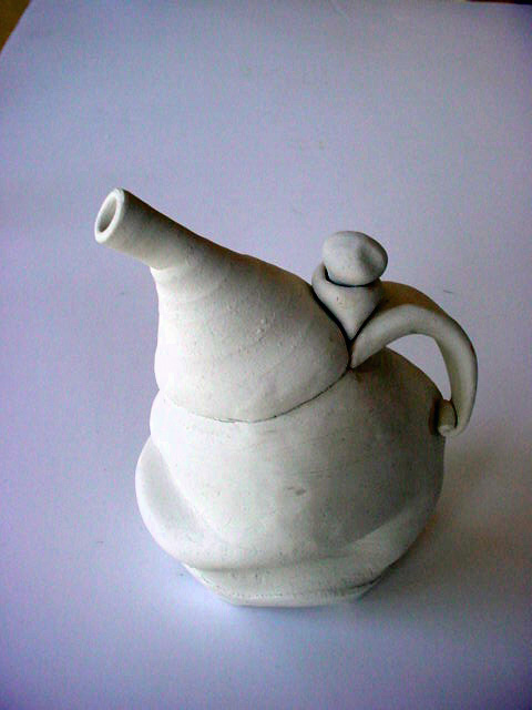| J.O. said, "I like how you can follow the line from the bottom of the pot to the top of the spout on the back side. It lookslikeit would fitr well in my hand, I would be drawn to pick it up." L.B. said, "too much flare on the business end of the spout". S.C. would like to fondle this one. Potter's note: The base was a thrown piece and I dropped it while trimming the base. I used it anyway. |