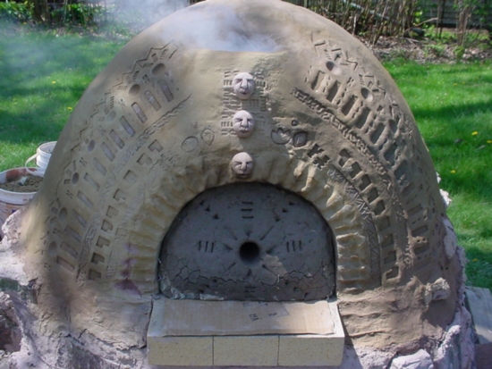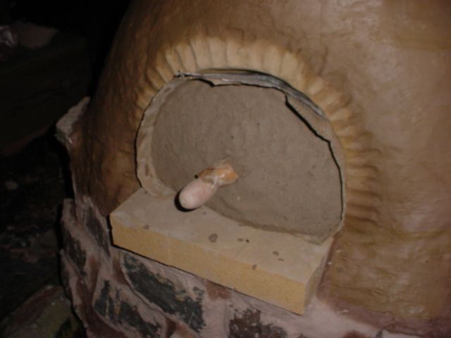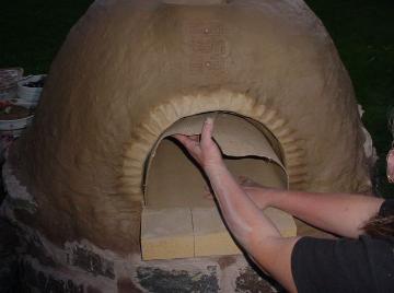 I put two bricks inside the oven to define the back of the doorway and keep the clay from squishing in too far, then used a