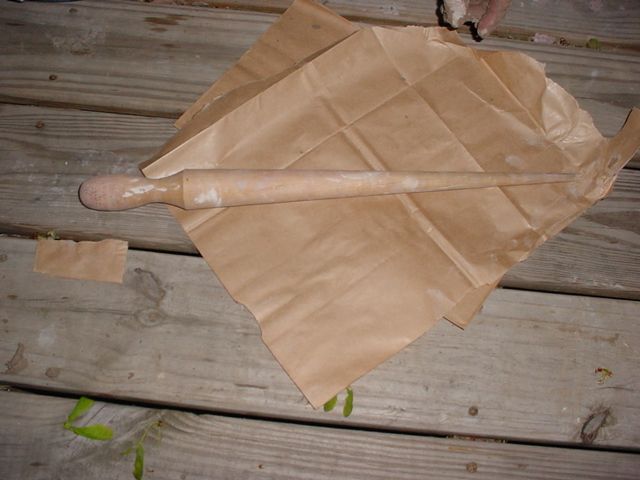 long strip of corrugated cardboard to line the floor and arch. I made yet another batch of clay in a storage tub -- no dog